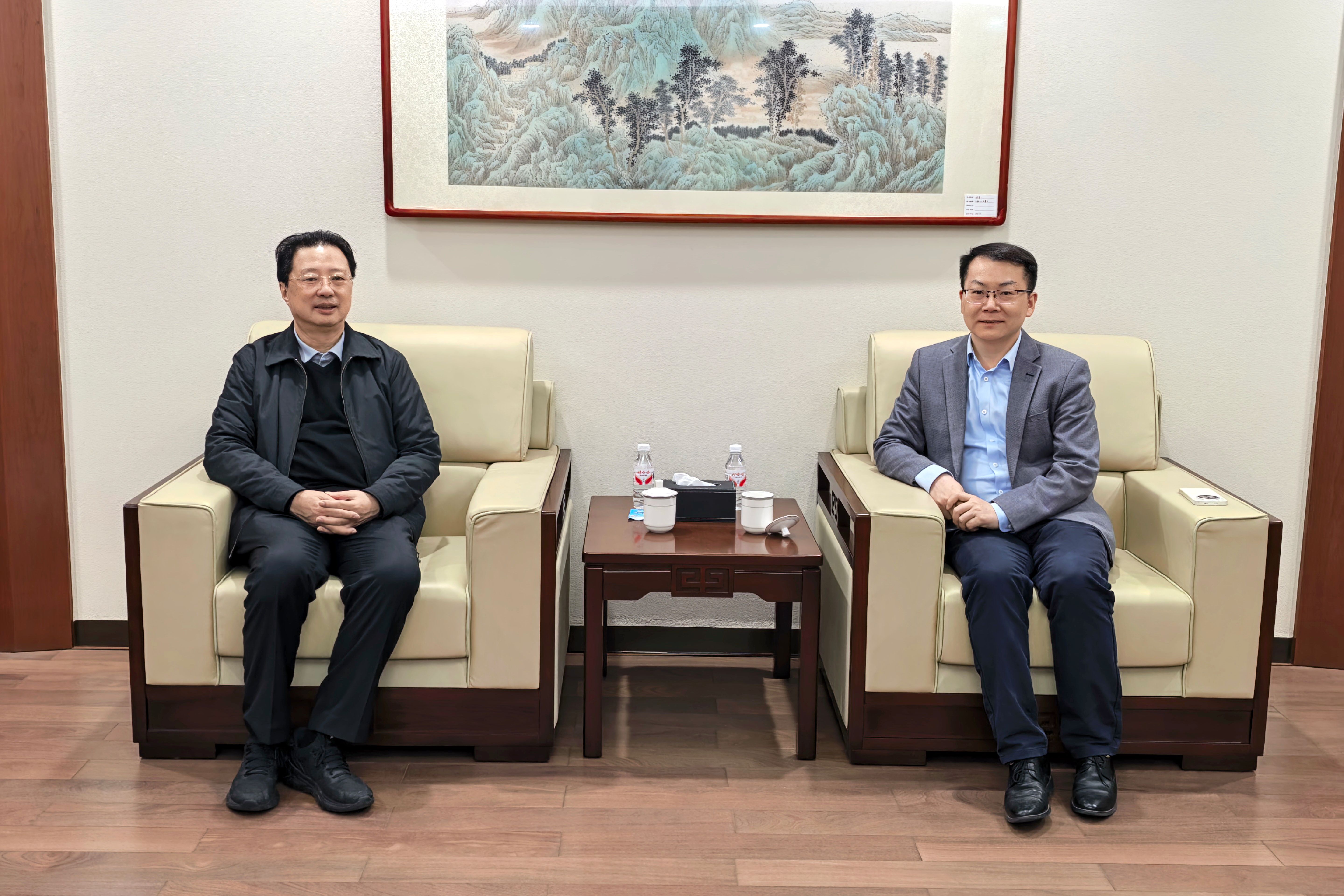 1月13日上午,应我院邀请,国务院学位委员会学科发展战略咨询委员会委员,福建师范大学原党委书记、校长黄汉升教授做客我校君武大讲坛,为师生做题为《中国体育学知识的变迁(1978-2024):从时代镜像到学科自觉》专场学术讲座,院党委书记覃安基主持讲座。讲座开始前,校党委常委、副校长赵双良在君武馆一楼会客厅亲切会见了黄汉升教授。