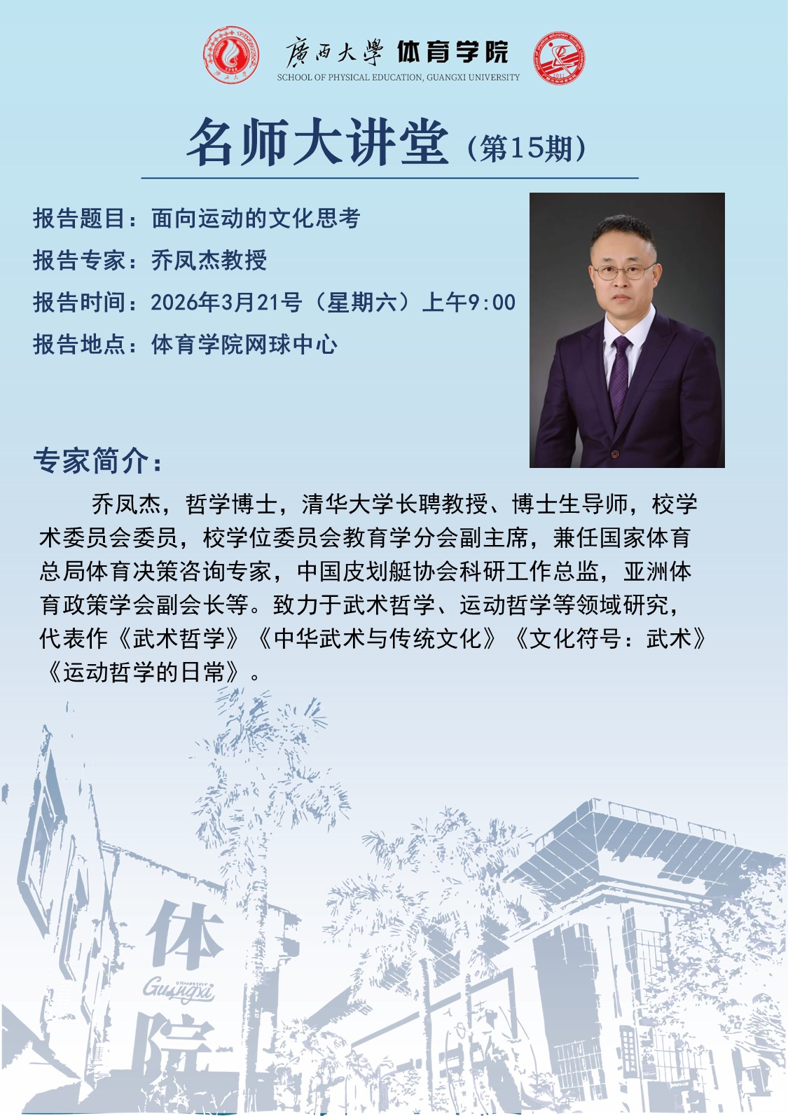 体育学院名师大讲堂(第15期):面向运动的文化思考