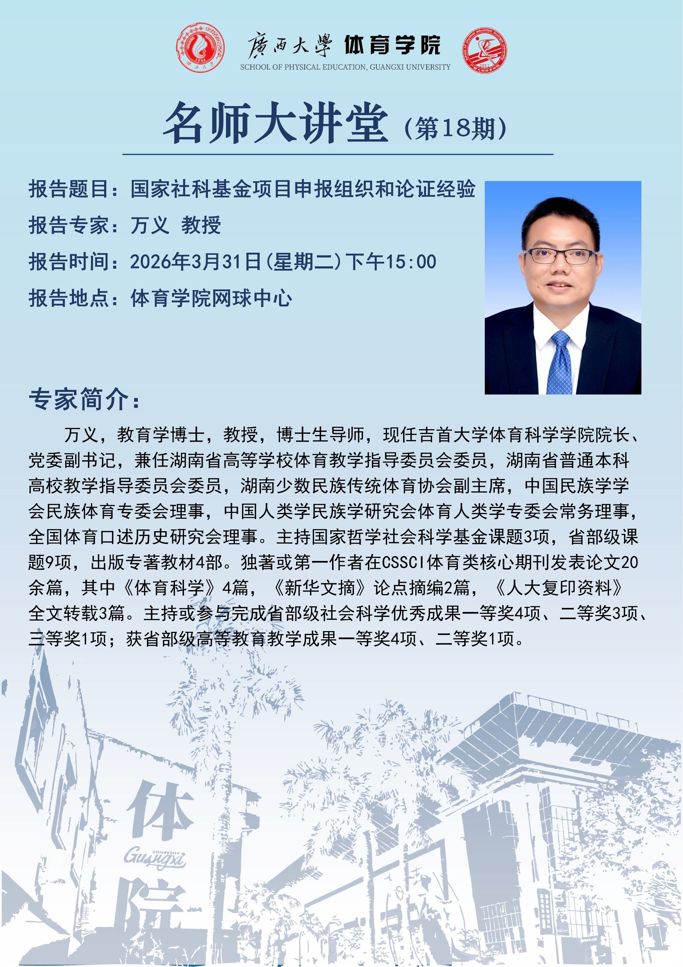 体育学院名师大讲堂(第18期)-国家社科基金项目申报组织和论证经验(2026-03-27)