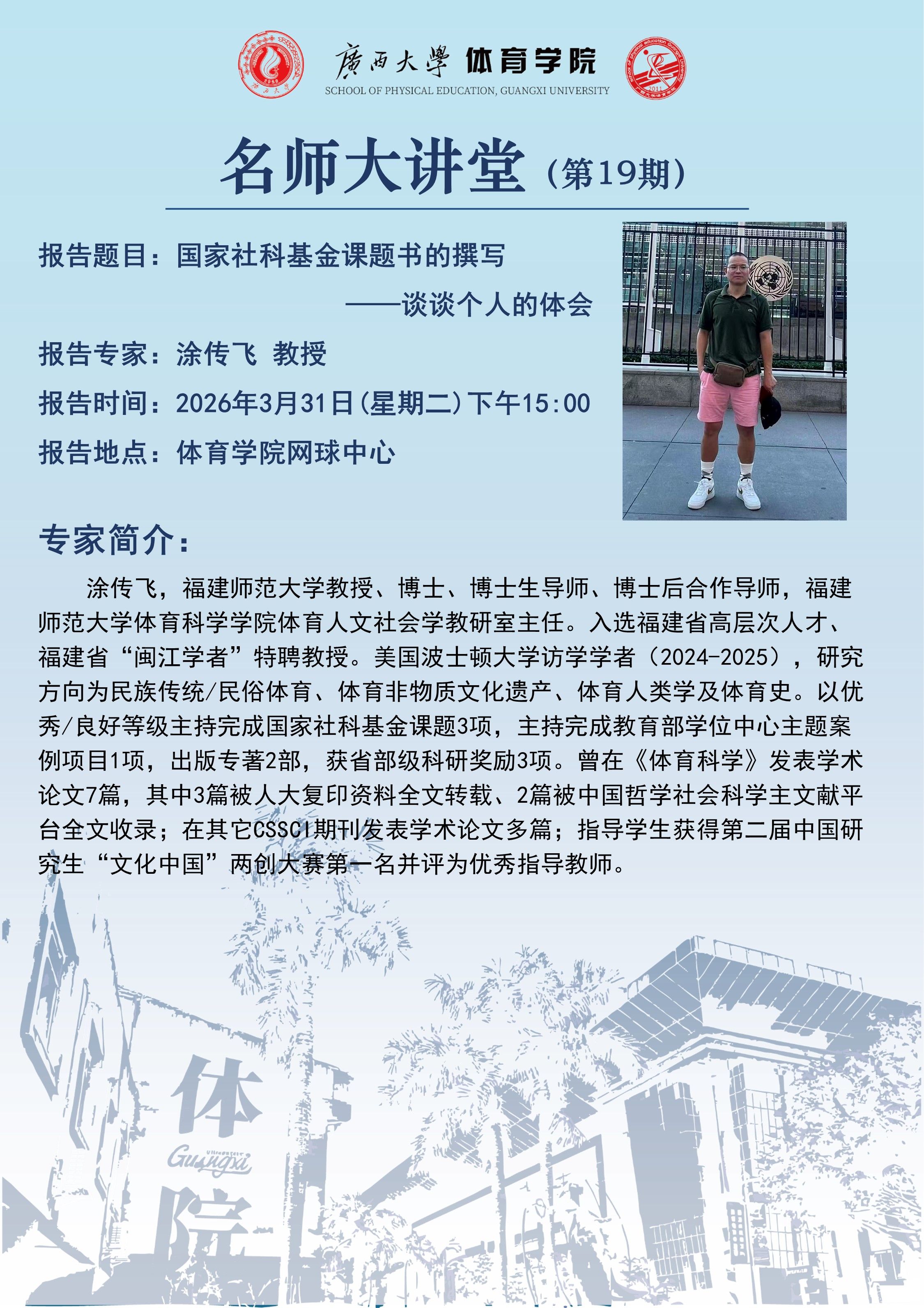 体育学院名师大讲堂(第19期)-国家社科基金课题书的撰写—谈谈个人的体会(2026-03-27)